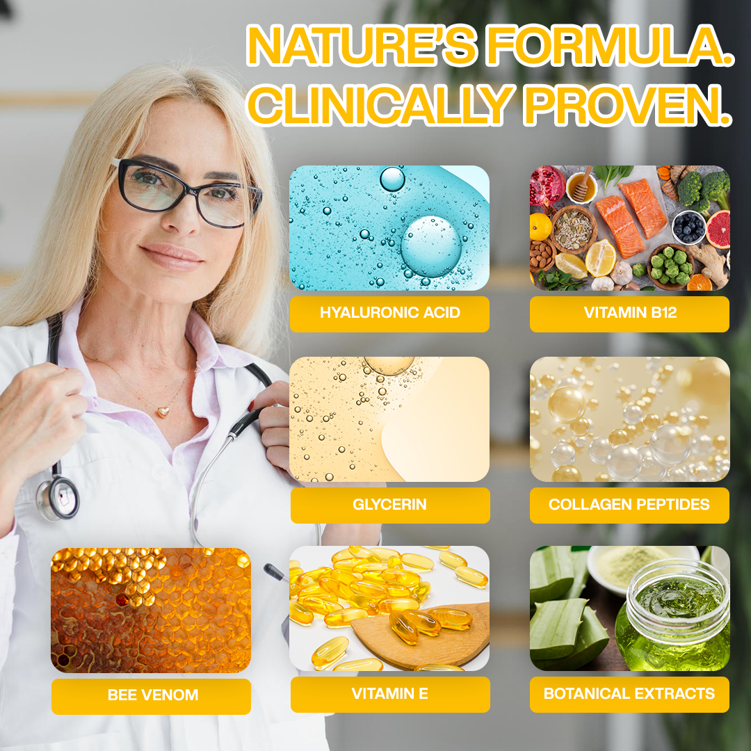 ✅ Stimulates Collagen Renewal – Bee venom and peptides trigger the skin’s natural repair response, boosting fibroblast activity to rebuild structural support.
