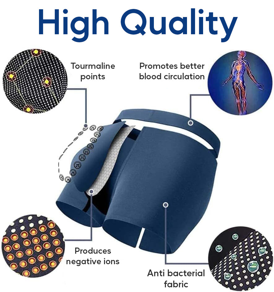 When the underwear is worn, the negative ions and tourmaline beads come into contact with the body, generating a beneficial energy field. This field promotes improved blood circulation, reduced inflammation, and enhanced overall prostate health. The gentle pressure and targeted support provided by this innovative fabric design alleviate discomfort and encourage a sense of well-being throughout the day.