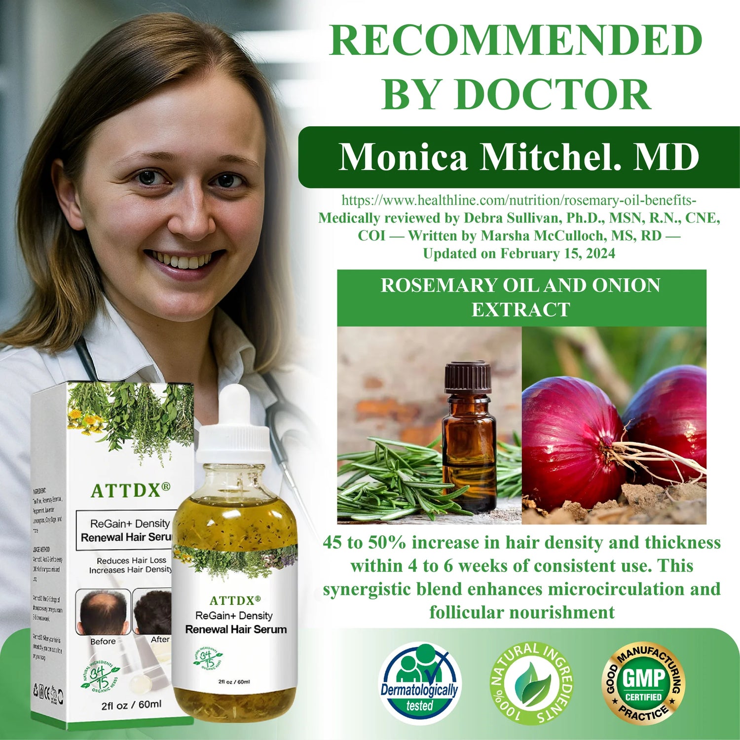 Bring back thicker, stronger hair with ReGain+ Density Renewal Hair Serum. Powered by Rosemary Oil and Onion Extract, it boosts growth, reinforces weak strands, and restores a fuller, healthier look
