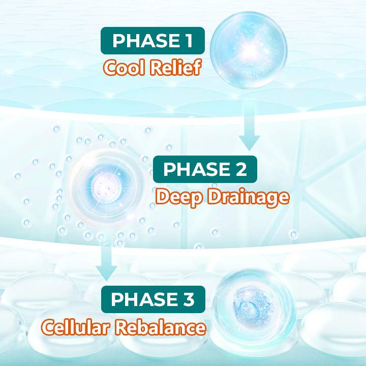 It penetrates deeply into the skin to relax blood vessels, reduce inflammatory pressure, and rehydrate fatigued tissues — helping the body drain and deflate naturally.
